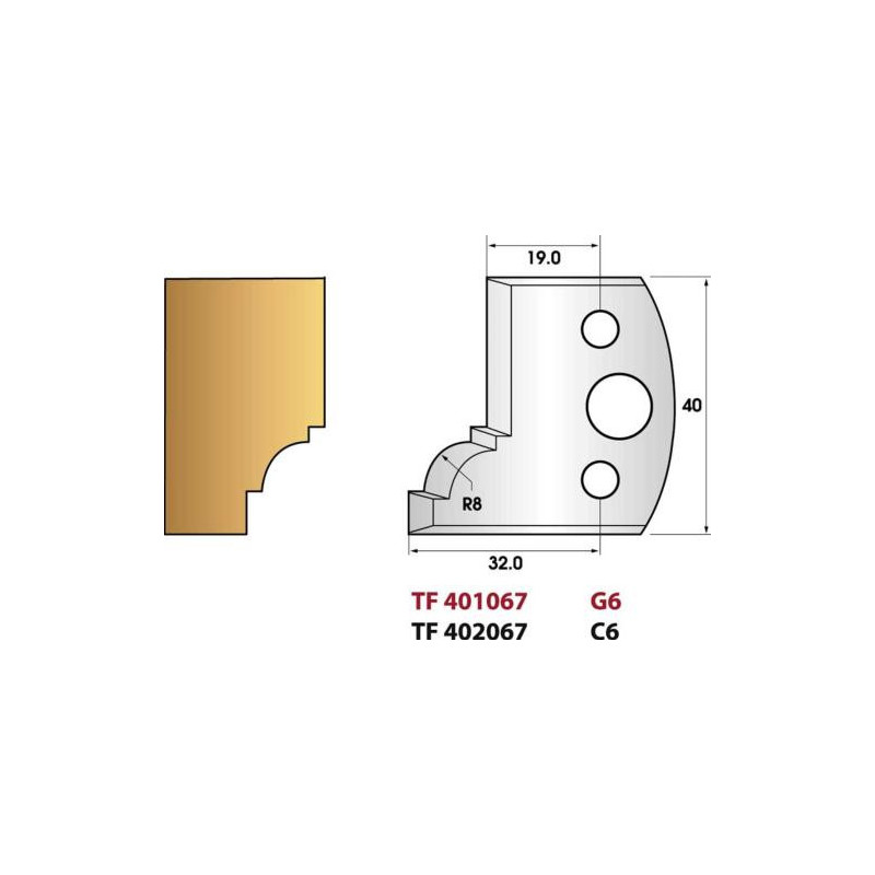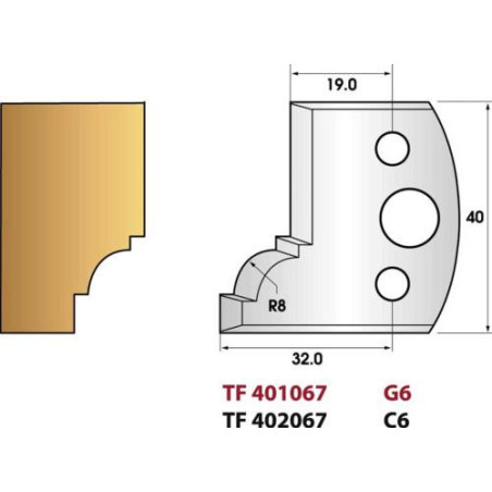 Jeu de 2 fers de toupie n°067 pour quart de rond, hauteur 40 mm