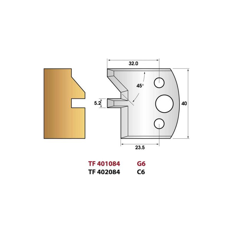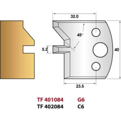Jeu de 2 fers de toupie n°084 pour rainure chanfreinée, hauteur 40 mm