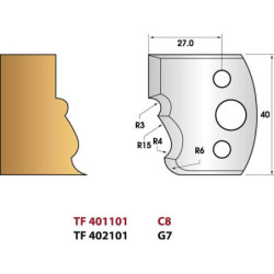 Jeu de 2 fers de toupie n°101 pour moulure régence, hauteur 40 mm