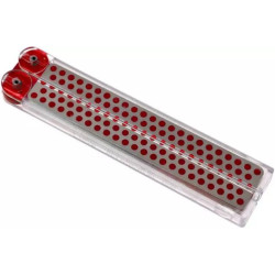 Période de rodage : au début votre pierre semblera particulièrement agressive. Elle doit se roder. Elle s'adoucira rapidement aux premiers affutages. Inutile d'exercer de fortes pressions ; laissez les diamants faire le travail.