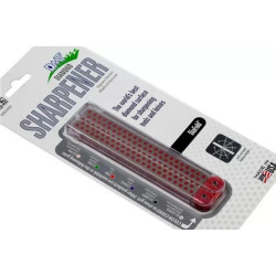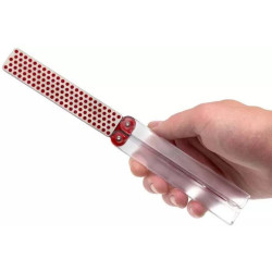 Je dégrossis au tiers-point et je finis é la pierre pour un tranchant parfait. Tras légare et incassable par rapport é une pierre classique. On peut l'avoir dans la poche et le manche papillon est bien pensé pour la protéger.