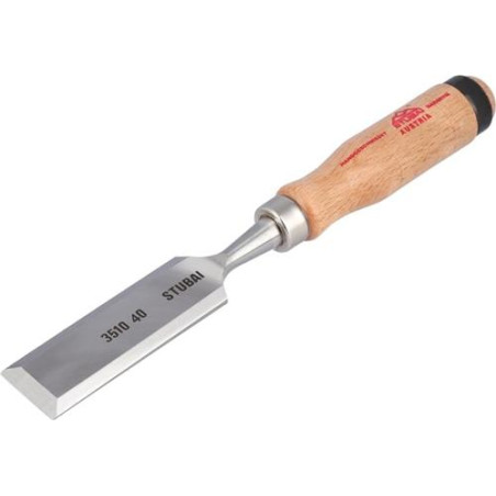 Ce ciseau à bois a une largeur de travail de 40 mm et un manche en bois de hêtre .