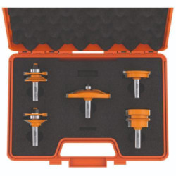 Ce coffret CMT contient 5 fraises de qualité, 1 fraise pour joints collés, 1 fraise pour tiroirs, 1 fraise plate bande avec roulement et 2 fraises doucine pour profils et contre profils. Diamètre de queue = 12MM