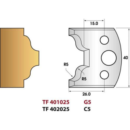 Jeu de 2 fers de toupie n°025 profil petit bois doucine, hauteur 40 mm