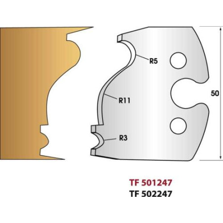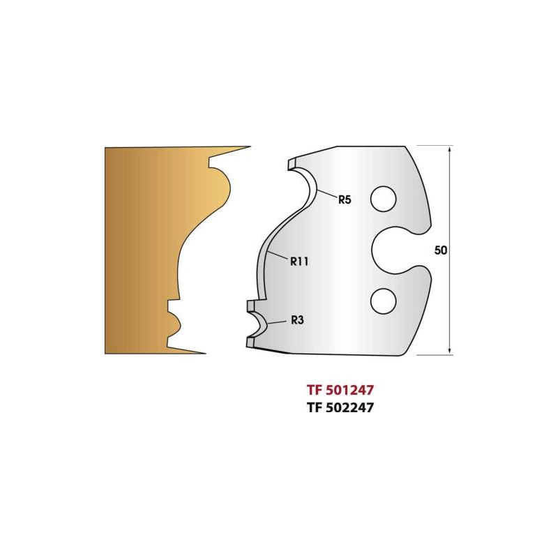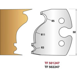 Ces fers de toupie se montent sur les porte-outils multi profil hauteur 50mm, alésage 30 ou 50 mm