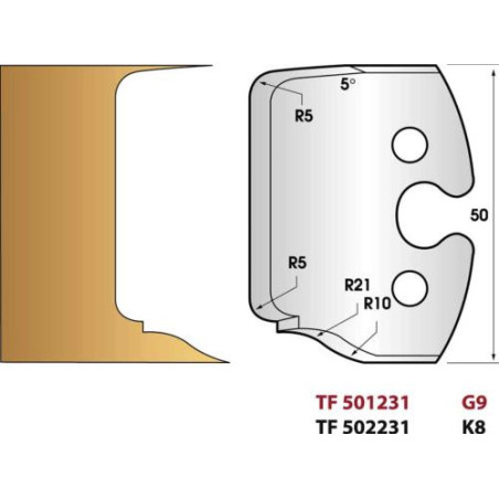 Ces fers de toupie se montent sur les porte-outils multi profil hauteur 50mm, alésage 30 ou 50 mm