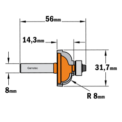 FRAISE CARBURE pour congé doucine romaine, rayon 8mm, queue de 8mm + roulement