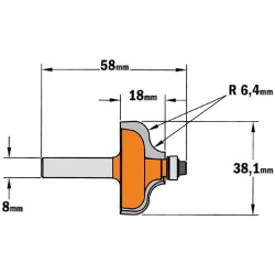 Fraise carbure pour moulure décorative, Queue de 8mm - CMT 960.064.11