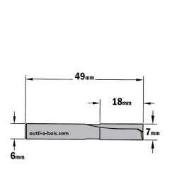 Cette fraise de défonceuse CMT a un diamètre de 7 mm, une queue de 6 mm ,une longueur utile de 18 mm et une longueur totale de 48 mm.