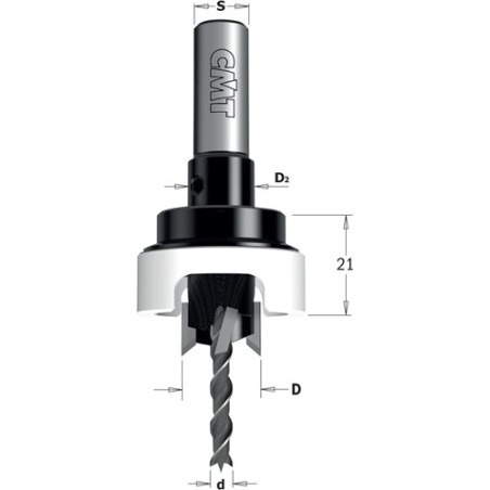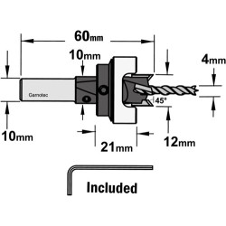 Ce fraisoir CMT a un diamètre de 10 mm et est livré avec une mèche hélicoïdale de 4 mm.