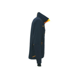 Équipée de deux poches à l'avant et une poche pour téléphone portable sur la poitrine avec zip. Deux grandes poches intérieures. Capuchon rétractable ajustable. Poignet extensible coupe-vent. Cordon anti-enchevêtrement réglable à l'intérieur de la poche.