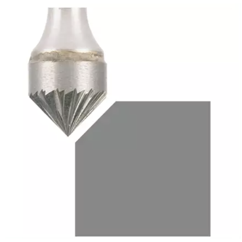 Cette lime rotative au carbure de tungstene est conique à 90°. Elle convient pour l'ébavurage des matériaux suivants : Laiton, cuivre, fonte, bronze, titane, aciers.