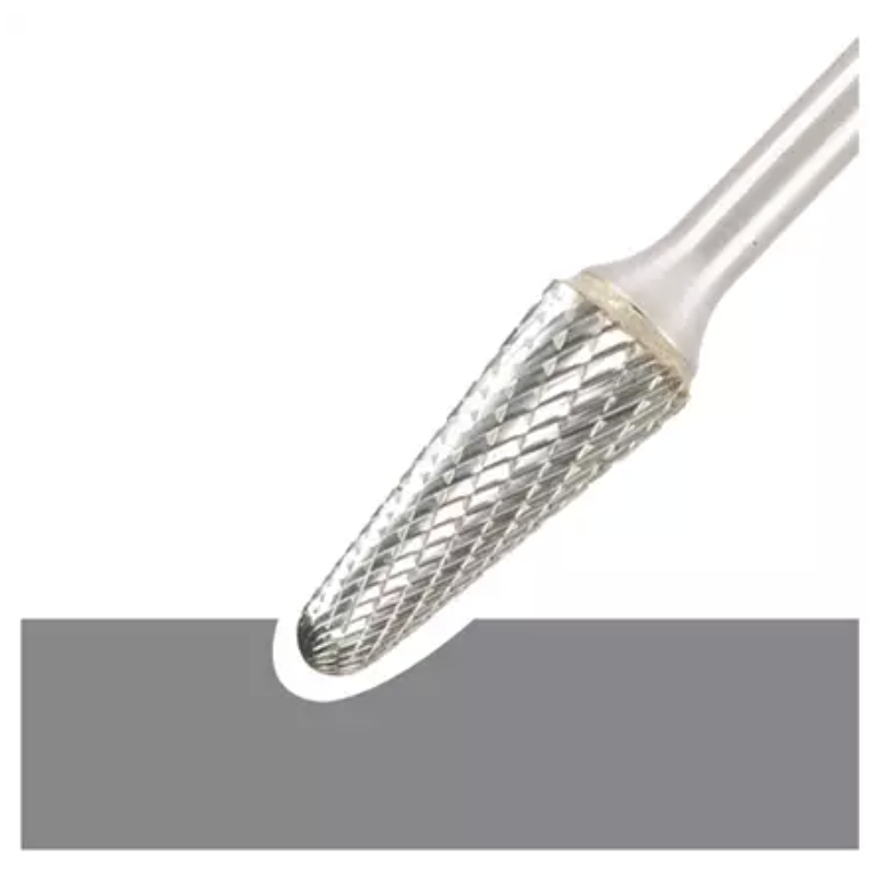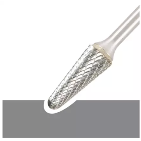 Cette lime rotative au carbure de tungstene est conique au bout arrondi. Elle convient pour l'ébavurage des matériaux suivants : Laiton, cuivre, fonte, bronze, titane, aciers.