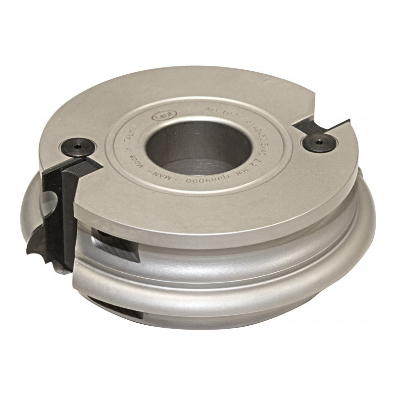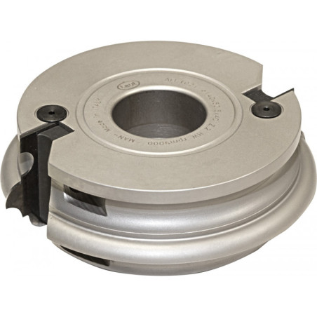 Cet outil à plaquettes carbure permet de réaliser des quarts de rond d'un rayon de 15mm en travaillant par dessus. Il a un diamètre de 140 mm, un alésage de 50 mm et 2 coupes carbure.