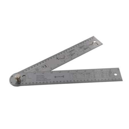 Rapporteur d'angle 600mm pliant et robuste, en acier, constitué de 2 réglets portant graduations métriques et impériales. Détecteurs d'angles intégré facilitant la prise de mesure d'angle. Vis de serrage moletée. Ce rapporteur s'ouvre à 360° avec une tolérance de précision de lecture de +/-1. Permet de mesurer angles et longueurs.