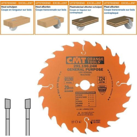 Lame circulaire CMT pour coupes transversales pour portatives - Diamètre 190mm - Alésage 20mm - 40 dents alternées - Ep 2,6/1,6 - CMT Orange tools Preis 32,28 € Bruttopreis