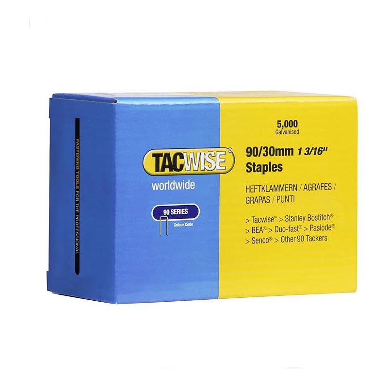 • Lot de 5000 agrafes à couronne étroite galvanisées de type 90 mm, avec pointes biseautées en forme de V pour une pénétration facile