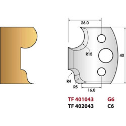 Jeu de 2 fers de toupie n°043 profilés, hauteur 40 mm