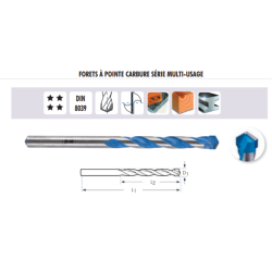Foret avec pointe au carbure pour le perçage du bois, du métal et des matériaux de constructions