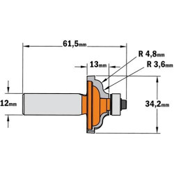 Fraise carbure pour moulure décorative, Queue de 12mm - CMT 946.825.11