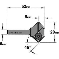 Fraise à chanfreiner CMT à plaquettes - Angle 45° - Queue de 6mm