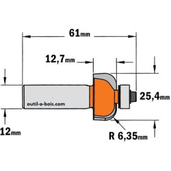Fraise à congé CMT Rayon 6,35 mm - Queue de 12 mm