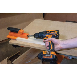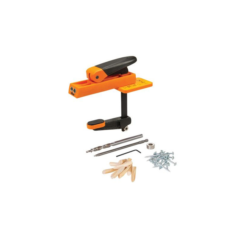Gabarit de perçage oblique avancé avec pince de serrage intégrée. Corps en nylon robuste avec guides de perçage en acier trempé. Permet de percer rapidement à l'aide du plateau. Pince de serrage rapide intégrée et indicateur de paramétrage de la bague, sur le côté du gabarit pour un réglage rapide. Pour un usage avec des pièces d'épaisseur 12mm, 25mm, 38mm, 50mm