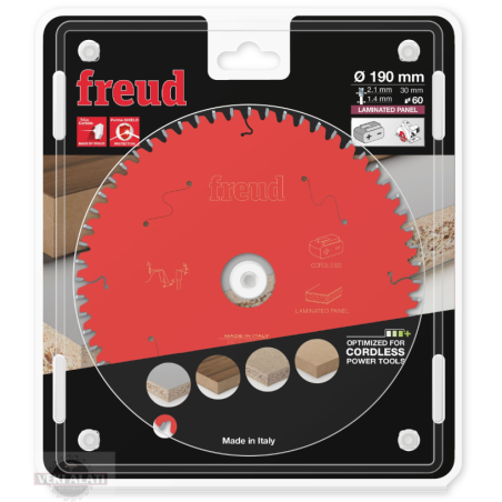 Lame circulaire avec angle d'attaque négatif pour le sciage des panneaux. Les lames FREUD sont revêtues d'une protection anti-corrosion qui les maintiennent à basse température pendant leur utilisation. L'action antiadhérente améliore l'éjection des copeaux et réduit l'accumulation de résine.