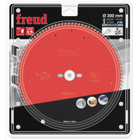 Lame circulaire avec angle d'attaque négatif pour le sciage de l'aluminium. Les lames FREUD sont revêtues d'une protection anti-corrosion qui les maintiennent à basse température pendant leur utilisation. L'action antiadhérente améliore l'éjection des copeaux et réduit l'accumulation de résine.