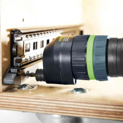 Le module excentrique à réglage angulaire rapide permet de réaliser des perçages et des vissages près des bords. Le module excentrique est utilisable avec les perceuses-visseuses dotées d'un support FastFix et d'une fermeture à baïonnette. Le support d'embout 1/4" verrouillable empêche une chute accidentelle de l'embout ou de l'accessoire CENTROTEC, par exemple un foret ou un embout.