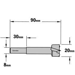 Cette mèche à façonner acier CMT a un diamètre de 20 mm et une longueur totale de 90 mm.