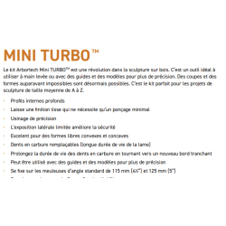 Contenu de la livraison : en plus du disque de fraisage, le kit ARBORTECH Mini Turbo comprend 5 disques abrasifs pour meuleuse d'angle (K80, 180, 320), un tampon de ponçage en caoutchouc, un adaptateur d'extension, un kit de fixation et une clé Torx