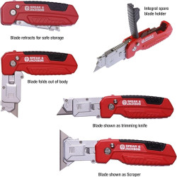 • Conception durable et sûre – Corps entièrement métallique avec poignée antidérapante pour un contrôle et un confort optimaux ; la lame se replie dans le manche pour un rangement et un transport sécurisés