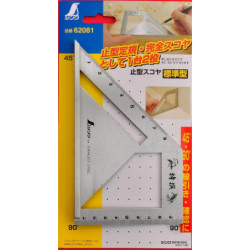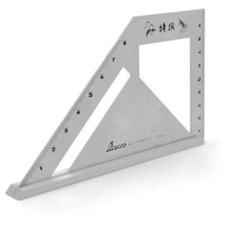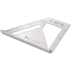 Équerre multifonction extra-plate avec léger talon. Permet de tracer sur montants, angle de 45°, 90° et 135°. Sert aussi de trusquin