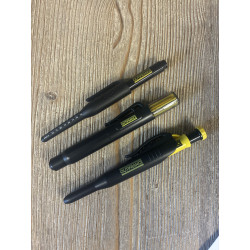 Composé d’un marqueur noir à encre permanente, d’un porte-mine télescopique et d’un tube distributeur de 6 mines de rechange, ce kit polyvalent permet des marquages précis dans les zones difficiles d’accès comme par exemple : le fond d’un trou, à travers une pièce à fixer ou un gabarit, dans les espaces étroits comme les rainures et feuillures, sous un carter, dans les recoins de meubles ou machines, à l’intérieur de profils métalliques ou cornières, etc.