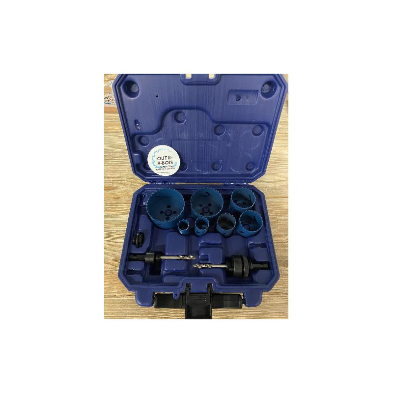 Ce coffret comprend 7 scies cloches en acier bi-métal HSS, reconnues pour leur résistance, leur durabilité et leur efficacité de coupe. Il est livré avec 2 arbres de montage ainsi qu’un adaptateur, garantissant une compatibilité optimale avec les différents diamètres de trépans et une utilisation polyvalente sur chantier comme en atelier.