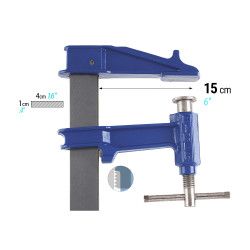 Saillie (profondeur de serrage) d’environ 150 cm — permet serrage sur panneaux épais