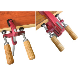 Serre-joint à coin double. Permet un double troisième point de serrage.