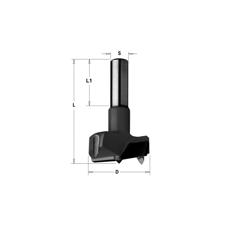 Cette mèche CMT a un diamètre de 42 mm, une queue de 10x26 mm et une longueur totale de 57.5 mm.