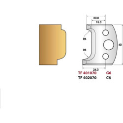 Jeu de 2 fers de toupie n°070 pour moulure, hauteur 40 mm