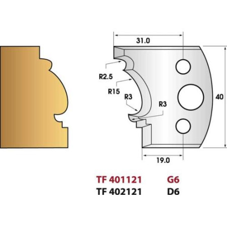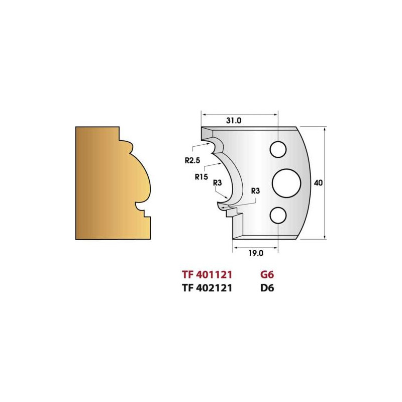 Jeu de 2 fers profilés hauteur 40 mm pour porte-outil à profiler alésage 30 mm ou 50 mm.