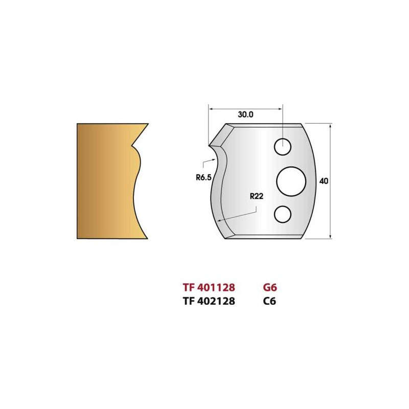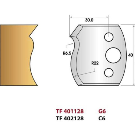 Jeu de 2 fers de toupie n°128 profil main courante, hauteur 40 mm