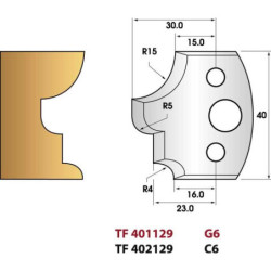 Jeu de 2 fers de toupie n°129 profil multi-moulure, hauteur 40 mm