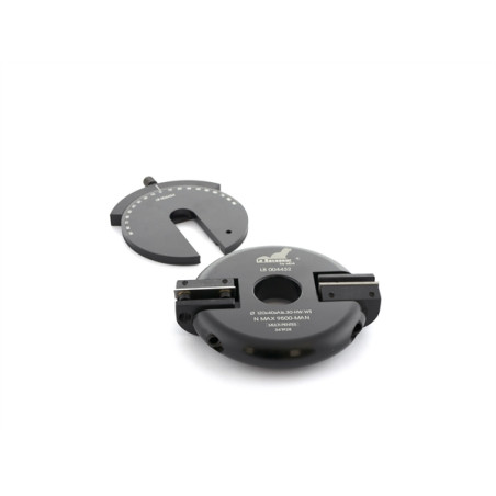 VOUS INDIQUEZ L'ANGLE CHOISI SUR LE RAPPORTEUR QUI SERT DE GABARIT DE RÉGLAGE POUR LES TÊTES DE L'OUTIL.