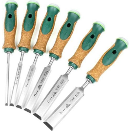 Ces 6 ciseaux à bois ont un manche ergonomique en liège.