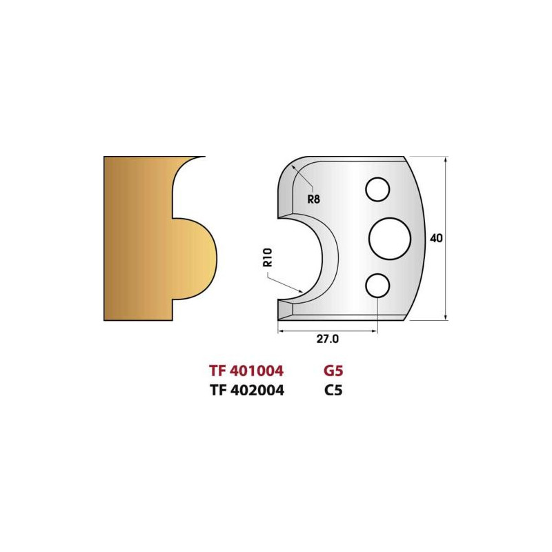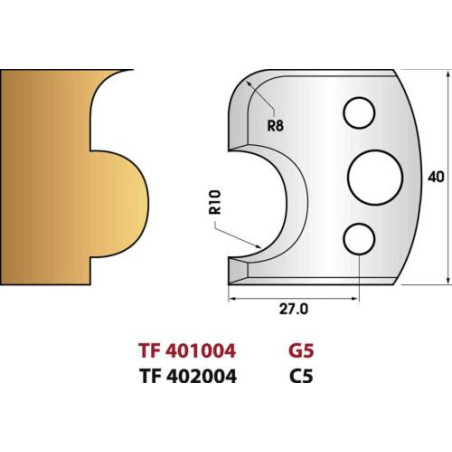 Jeu de 2 fers de toupie n°004 profil boudin, hauteur 40 mm