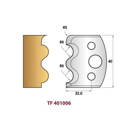 Jeu de 2 fers de toupie n°006 pour moulure, hauteur 40 mm
