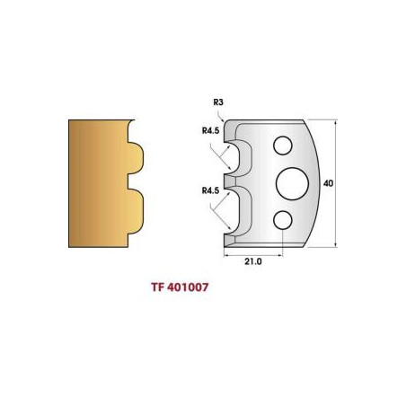 Jeu de 2 fers de toupie n°007 profil baguette, hauteur 40 mm