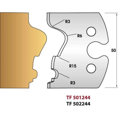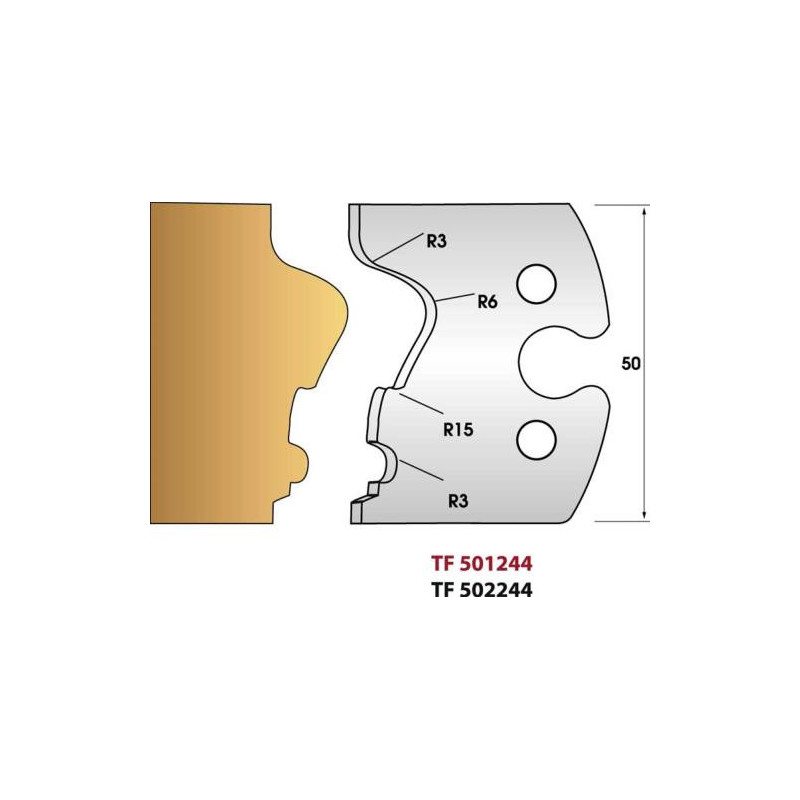 Ces fers de toupie se montent sur les porte-outils multi profil hauteur 50mm, alésage 30 ou 50 mm