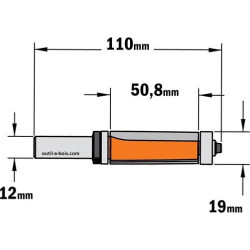 Fraise à Affleurer CMT - Diamètre 19 mm - Hauteur 50.8 mm - Queue de 12 mm avec double roulement
